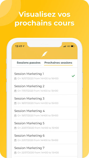 - Visualisez vos futurs cours via le calendrier, la vue journalière ou mensuelle.