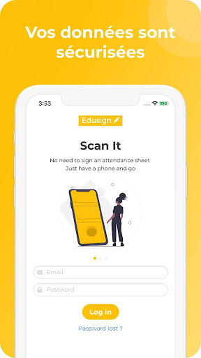 - Signez avec votre doigt et scannez le code QR affiché par votre professeur ou administrateur pour être enregistré.