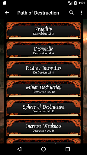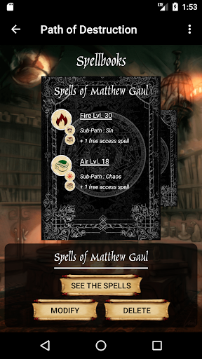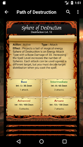 The objective of this application is to provide you a simplified access to the numerous spells of the game. It allows you to see spells by path, to create your own spells list and to search for a donate spell or spell type in a path.