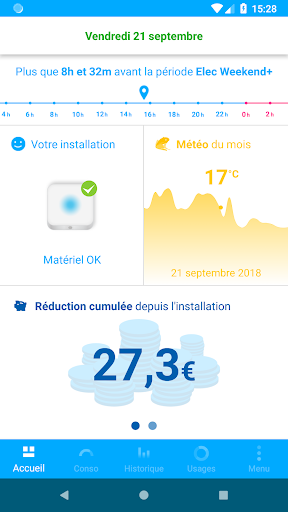 Cette application fonctionne avec une offre d’électricité Elec Weekend+ et le matériel (facile à installer !) qui va avec. Si vous n’avez pas souscrit à l’offre et que vous souhaitez des renseignements, c’est par là : www.elecweekendplus.fr