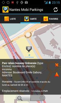 - Afficher les informations relatives à un parking sur la carte de Nantes en sélectionnant ce parking.