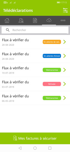 toutes vos télédéclarations avec nom patient et montant facturé. Vous validez ou pouvez même refuser si vous constatez des erreurs.