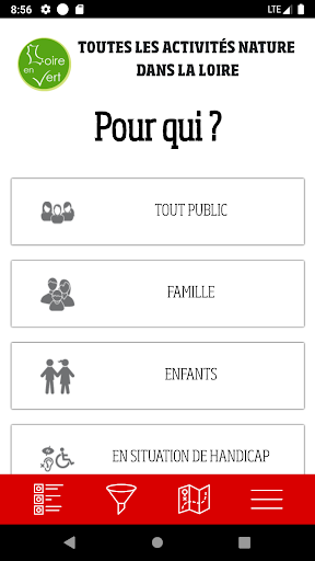 L’application vous propose ensuite de filtrer les résultats par type de public (tout public, familles, enfants, public en situation de handicap).