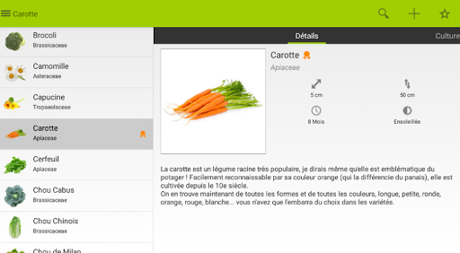 My Potager will allow you to completly manage your kitchen garden. Whether you are a beginner or more advanced gardener, you will find all the information you'll need to grow more than 70 vegetables, flowers or herbs.