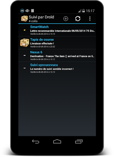 • Partager un suivi de courrier via Android Beam (requiert Android 4.2 )