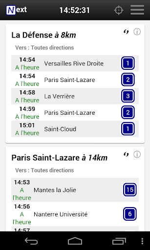 For all your suburb train trips around Paris, Next allows you to see the times of the next trains from your favorite stations.