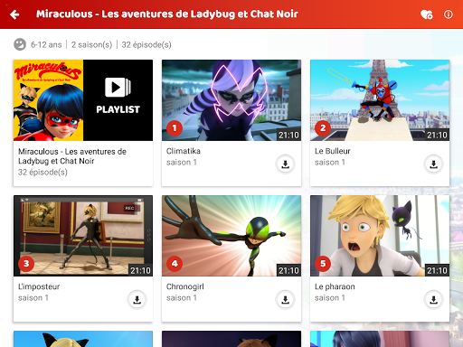 - Filtre des programmes par tranche d'âge