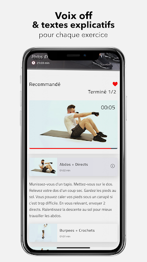 In addition, so that the user of the app has the most results possible during his training the coach has described all of the exercises of the application in voiceover and in text format.