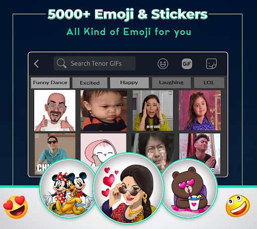 Classic Big keyboard with amazing custom keyboard features, is designed for those who like sending message with GIF and Sticker and emoji art.