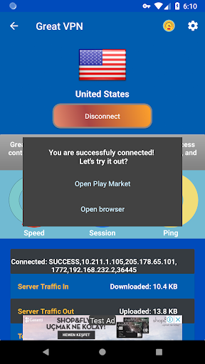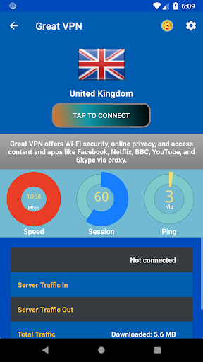 Great VPN is a lightning-fast app provide free VPN proxy service. Not need any configuration, just simply click one button, you can access the Internet securely and anonymously.