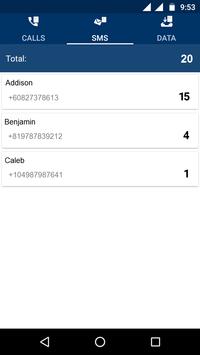 - User can see the detailed summary of call, sms with highest usage at the top.