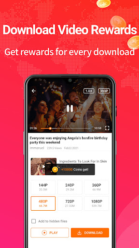 Supports video downloads of various resolutions, including 144p, 240p, 360p, 720p, 1024p, 4K, etc., as long as your phone has enough space, you can download high-definition videos as many as you like.