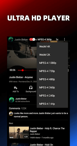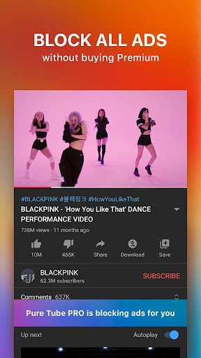- Allows you to play videos in background, in which way the video will continue to play when you exit Pure Video Tube for other social media apps, such as Line, Messenger, WhatsApp, etc.
