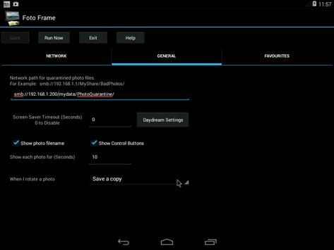 Foto Frame allows you to utilise the DayDream service to display your photo and video collection stored on your local network or device. The application is configured with the SMB network path of the file share containing your photos. Simply configure the screen saver timeout you want and your old android tablet or android TV box is now a photo screen saver.