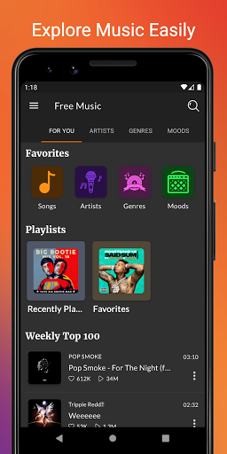 This is free music app for online streaming service and perfect spot where you can play trending music charts. Listen to top charts of music and add them in your playlists for free. Just play unlimited music non-stop stream of all song you love. Play cloud music in this background music player, you can stream music while doing other activities. Unlimited songs, online streaming plays from free music catalog from SoundCloud. Search trending artists, free songs, playlists for any mood. Match your taste with this music app. Add this player in to your one of the music apps collection.