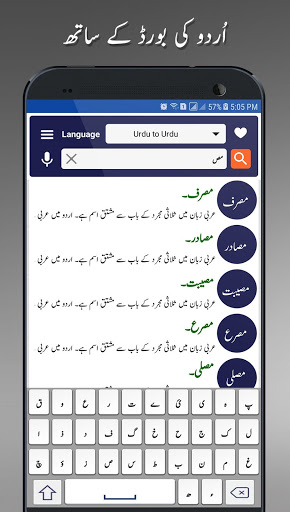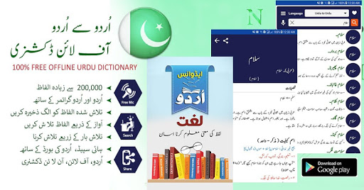 Offline Urdu Lughat is the first fully offline available Urdu to Urdu dictionary with complete details of a word. Urdu Lughat Dictionary contains more than 200,000 words. App has built-in Urdu Keyboard for searching, and Urdu font which doesn't require any additional Urdu feature on your device.
