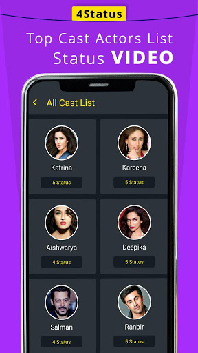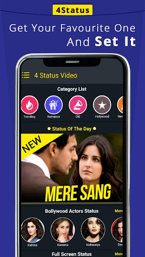 In this app you will get top actresses status video with on different category like love status, romantic status, attitude status etc. in 4Status app we have listed top most popular actress status video with separate field you can watch and download also you can set directly on social media story.