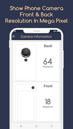 You can get information of front & back cameras with display resolution, RAM & storage information.