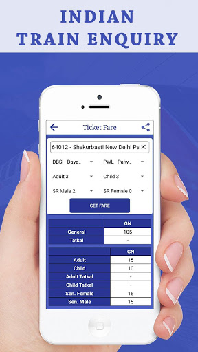 Here you can find out solution for indian train like live train status, any train enquiry, train running status, train time table, train schedule, seat availability, ticket fare, PNR status & complete train route details.