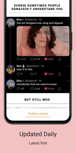The Today's selections section of the app contains fresh memes and memen that are guaranteed to make you laugh.