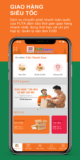 FUTA Express là ứng dụng dành cho khách hàng sử dụng dịch vụ vận chuyển và dịch vụ phát hàng thu tiền(COD) của CÔNG TY CỔ PHẦN DỊCH VỤ CHUYỂN PHÁT NHANH PHƯƠNG TRANG FUTA.
