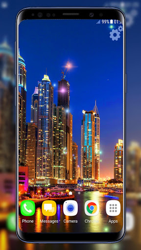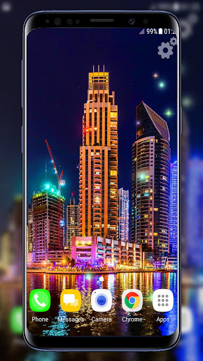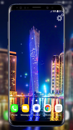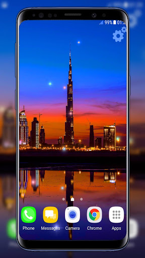 Dubai Night Live Wallpaper - This amazing Dubai HD wallpaper takes you to a trip to one of the most famous cities in the Persian Gulf region! Download Nights in Dubai Live Wallpaper and be fascinated by all the luxurious sights of this glorious city – expensive hotels, shopping malls, amazing exotic destinations and skyscrapers – all bathed in bright neon lights! Choose your favorite among these “beautiful HD wallpapers” – whether it is a Burj Khalifa live wallpaper, standing proud in all its might, or a picture of Burj Al Arab, the glamorous hotel – you won't make a mistake, because this Dubai theme will mesmerize you in any way! Enjoy the view from the top of the Princess Tower or be dazzled by the beauty of Dubai nights and all of the lights flashing and twinkling! This luxurious “Dubai city live wallpaper” is the only thing you need to decorate your screen!