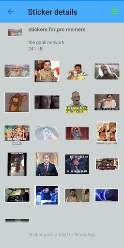 gaali meme Sticker WhatsApp application helps to easily express your emotions, send stickers on WhatsApp instead of emoji, keyboard type and make your overall chat looks more fun than the usual text and emoji. You can even use these stickers to reply on status & groups. Our sticker packs are small and lightweight, and you can add them easily to your collection to share & chat with others