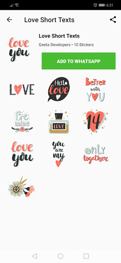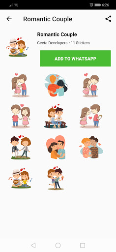 2. After the sticker is downloaded, you'll see a full preview. Click on Add to WhatsApp button if you like the sticker pack