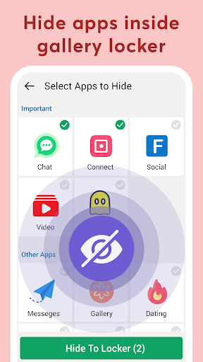 Hide social apps and games into the gallery locker. Only you can see hidden apps protected inside private space. App hider feature allows you to hide applications in hidden space with password protection.