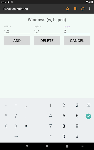 • specify the presence of window and door openings, the program will take this data into account when calculating.
