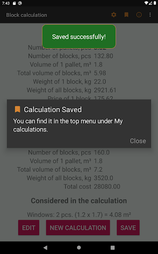 Save your calculation in the memory of your smartphone. Share your calculation on social networks, messengers or save in your cloud.