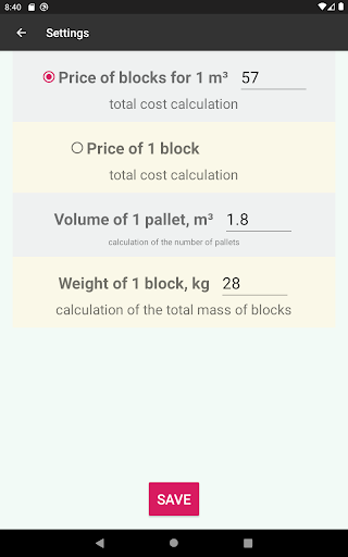 • price of blocks for 1 cbm or a piece - to calculate the total cost