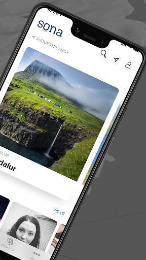Sona er appin til tann ferðafúsa føroyingin ella ferðafólkið, ið vil leita sær kunnleika á staðnum.