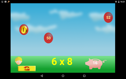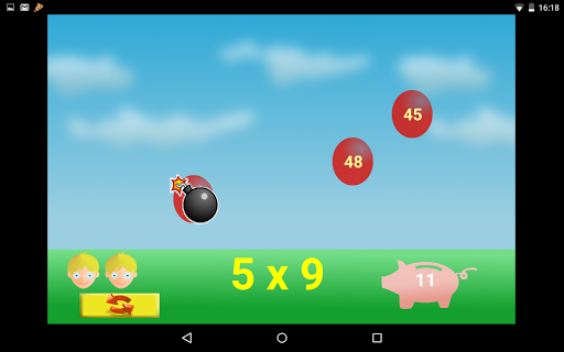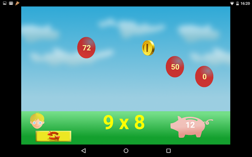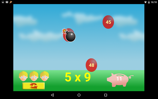 A fantastic game to learn multiplication tables. Chose one or more numbers and play... Touch the ballon with the right answer and you'll win a coin, but if it isn't the right ballon, you can find a bomb!