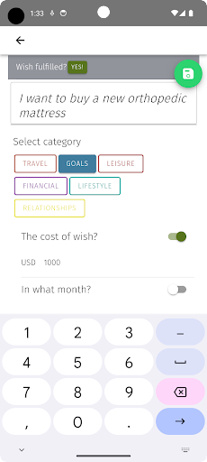 Cost and date added to wishes. Now you can display all desires by category or by month with a total cost.