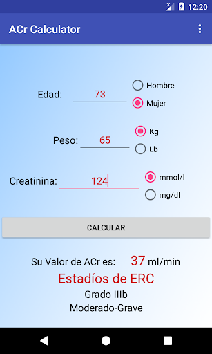 Es una sencilla aplicacion que permite determinar el estado de enfermedad renal cronica con solo introducir algunos datos. Ideal para estudiantes de medicina que necesiten calcular el aclaramiento de la creatinina.