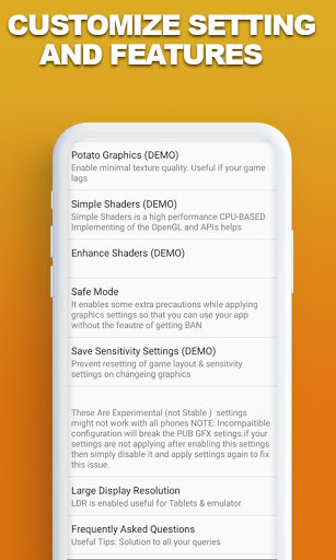 HD graphics tools are the app that assists any player in a battle royal game player and you can customize screen resolution and enable HDR graphics. Pub mobile lite helps to manipulate the FPS limit Shadows, Textures quality, and MSAA. High-Quality graphics is the main theme of this free app. Pub booster will help you reduce the graphics and unlock all that features graphics that are limited to your device. Pub will assist you to get the high graphics.