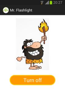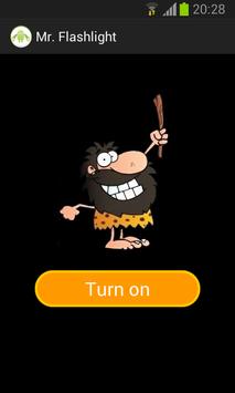 - It is very easy and convenient to use. You just open the app and the flashlight automatically turns on. Even if you press the home button and use another app or the screen turns off, the flashlight remains on. If you want to turn off the flashlight you either press the ''Turn off'' button below the caveman or you just press the ''Back'' button of your device, when the app is still running.