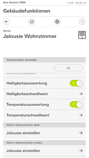 Gira System 3000 offers maximum flexibility and the best comfort for advanced blind and light control: The Gira Bluetooth app can be used to operate the comfort motion detectors, the Bluetooth blind timer and set the device settings. The app allows a direct connection to the controllers, quite simply via Bluetooth, no network or further gateway is required.