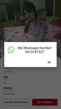 In our app, there are total 4 sections. in the first option, you will get "girls mobile numbers for prank". you can copy the number or just use the already created profile template and share it with your friends directly. click on "prank friend" button will open a popup to share that profile with anyone on chat apps installed on your mobile. if you want to copy the prank number just click on "get number button" and copy the number manually.