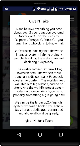 Give-N-Take is a community of selfless individuals with the aim of helping members achieve LONG TERM financial liquidity through peer to peer donation. It is a mutually beneficial platform which seeks the interest of one and all.