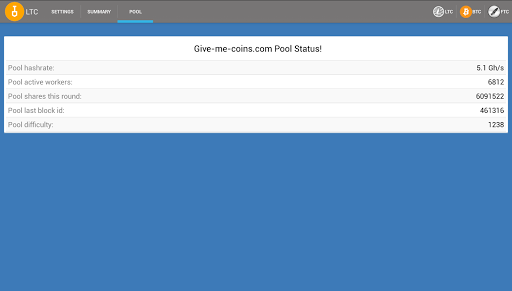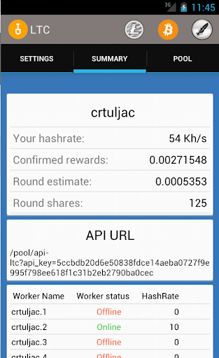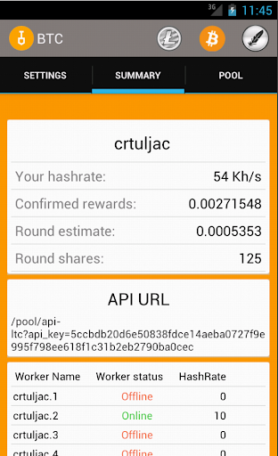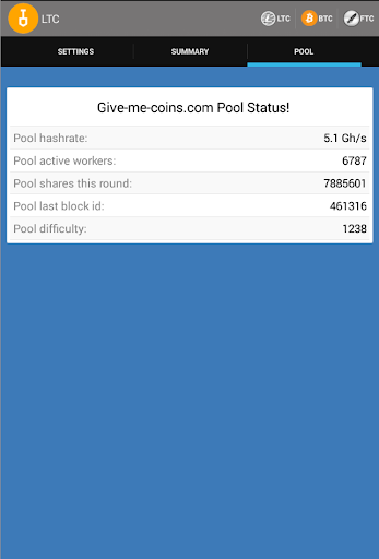 This is BTC, LTC, FTC, VTC and PPC Monitoring app for pool give-me-coins.com . Now you can watch your hashing performance for all your favourite cryptographic currencies (BitCoin, LiteCoin, FeatherCoin, VertCoin and PeerCoin) from your Android phone. App has gone through beta testing and we will continue to fix bugs as soon as possible. Every rating and comment is highly appreciated and will enable us to improve application according to our users needs.