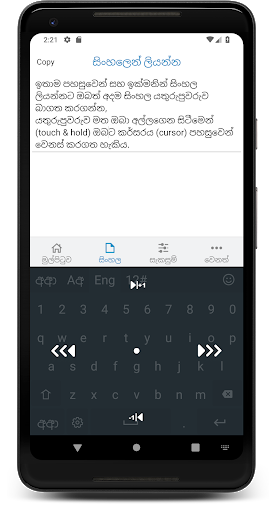 Singlish layout is one of the easiest layouts to type Sinhala letters on mobile devices. In Sinhala Keyboard app we have developed enhanced Singlish layout to maximize Sinhala typing experience in smaller mobile screens.