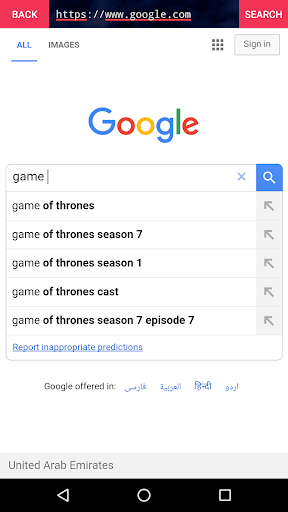 BlueSky is a simple 2mb browser with full screen and minimum layout. It is light and quick, easy to navigate between home page and web page. There is not action bar and toolbar so user can see maximum page of any website.