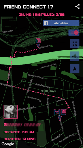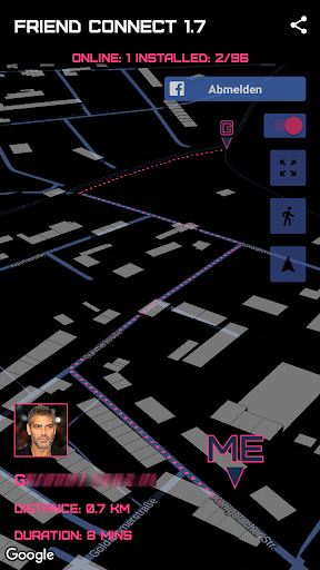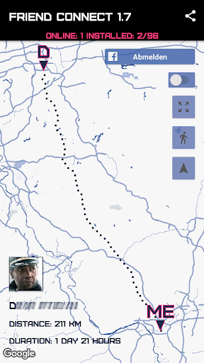 Locate facebook friends, who also installed this app and want to share location w YOU. As soon one of your friends opens the app, as you do in the same time, you will be able, not only to locate your friend, but also know, how far away from you she/he is, and how much is needed for her/him to get to you.