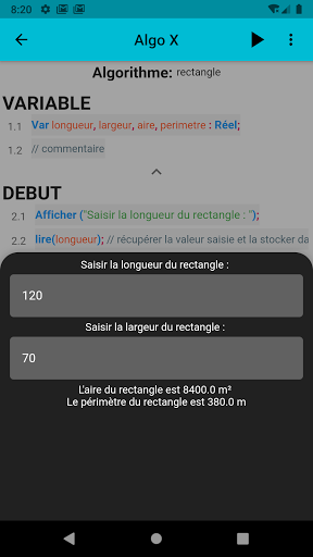 Description of Algo X - Editeur et Interpréteur d'algorithme