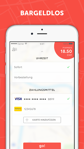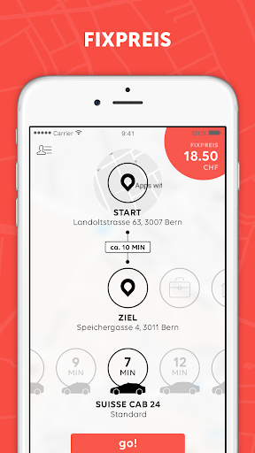 The go! app gets you safe and easily from A to B. Book the taxi of your choice in the app: You can see the fixed fare before booking and get educated taxi drivers - go! is the perfect addition to the public transportation offered by SBB.