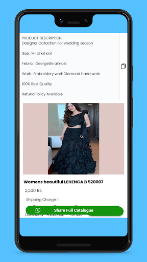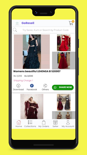 Just select a product that your Whatsapp and Facebook contacts will like and share the images with them. From products like Sarees, Kurtis, Dresses, Footwear to Accessories, GoResell offers a huge variety of products.