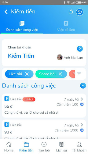 - Khách hàng vào app Golike tạo jobs về các dịch vụ