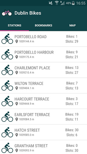 Dublin Bikes is an app to check the stations details, slots status, free bikes, distance, location in the map and all this info displayed in a list ordered by distance from you.